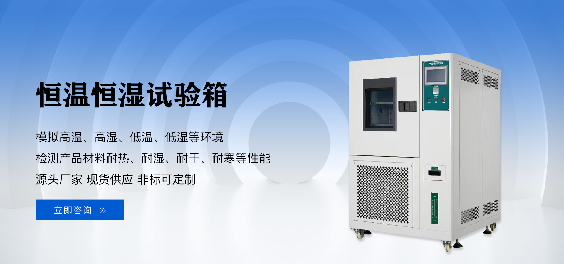 恒溫恒濕箱又稱恒溫恒濕試驗箱、恒溫恒濕試驗機,模擬高低溫濕熱等環境,用于檢測材料在各種環境下性能的設備及試驗各種材料耐熱、耐寒、耐干性能。適用于汽車、通訊、電子、電工、橡塑等行業。